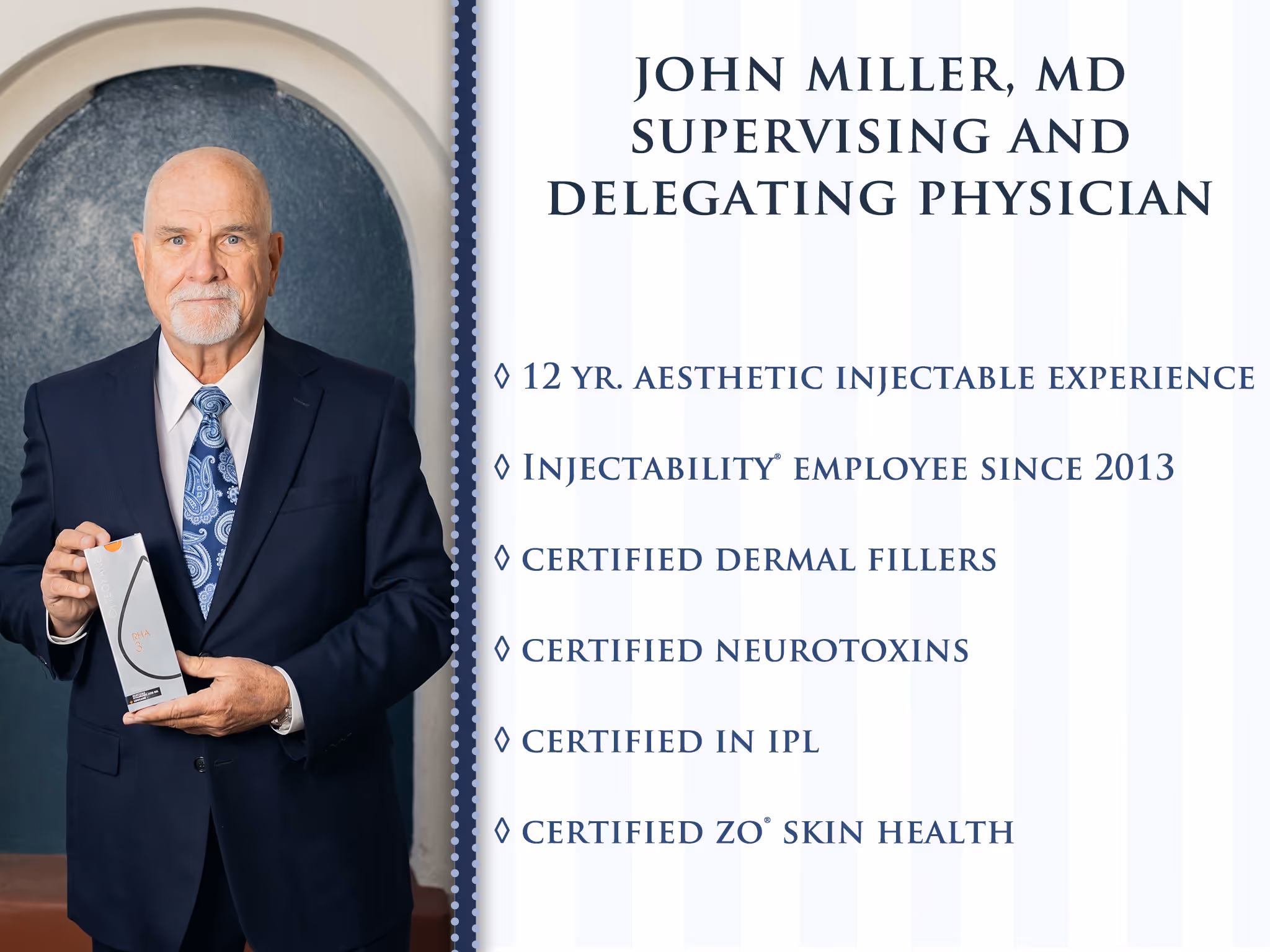 Dr. Miller recently merged his busy aesthetic practice in Newport Beach, CA with our well respected InjectAbility® Clinic. He brings to the table his years of experience in aesthetic medicine as well as the comfort of having his medical knowledge as a reputable presence in the practice.